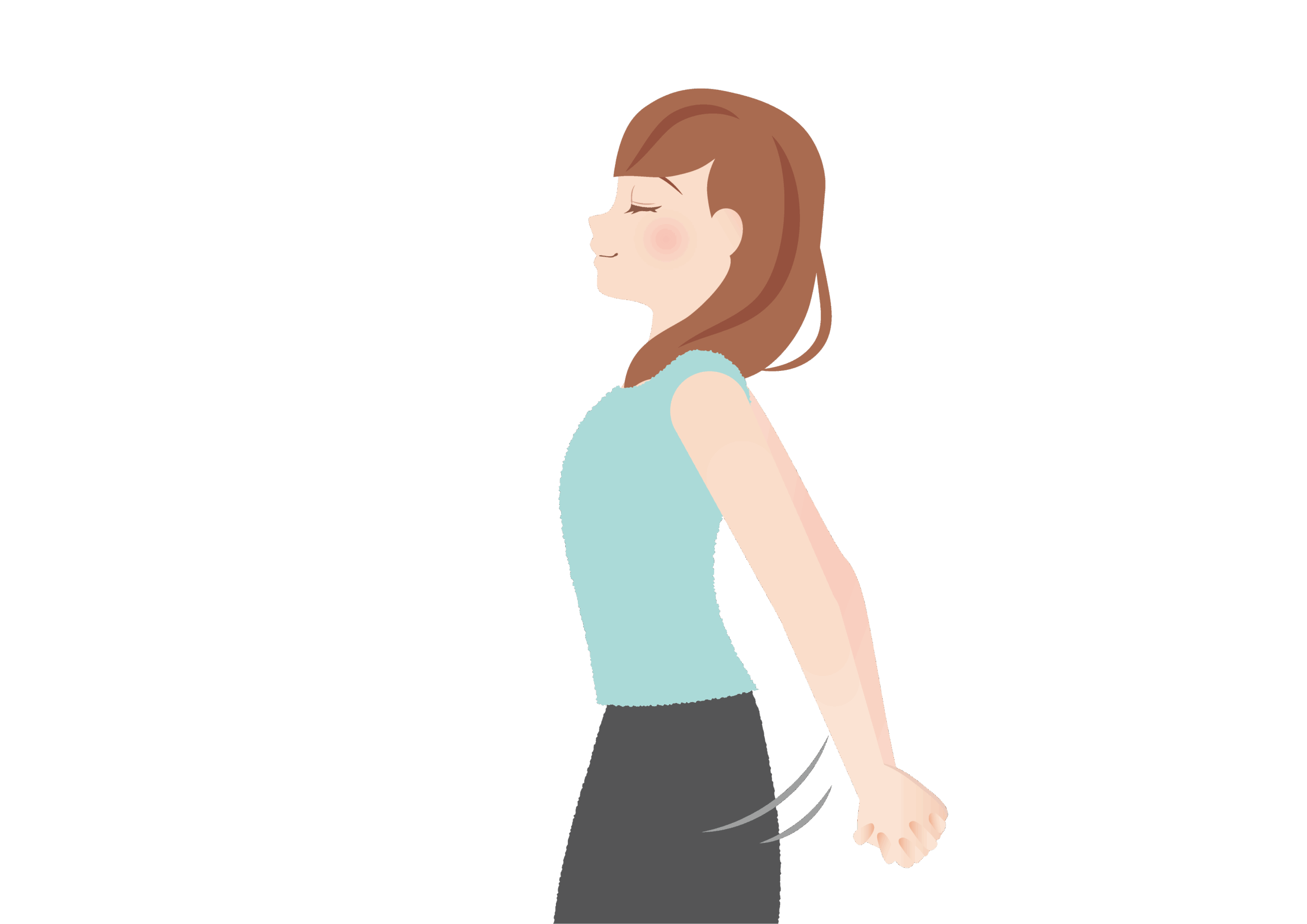 - 両手を頭の後ろで組み、体を左右にゆっくりと倒す。